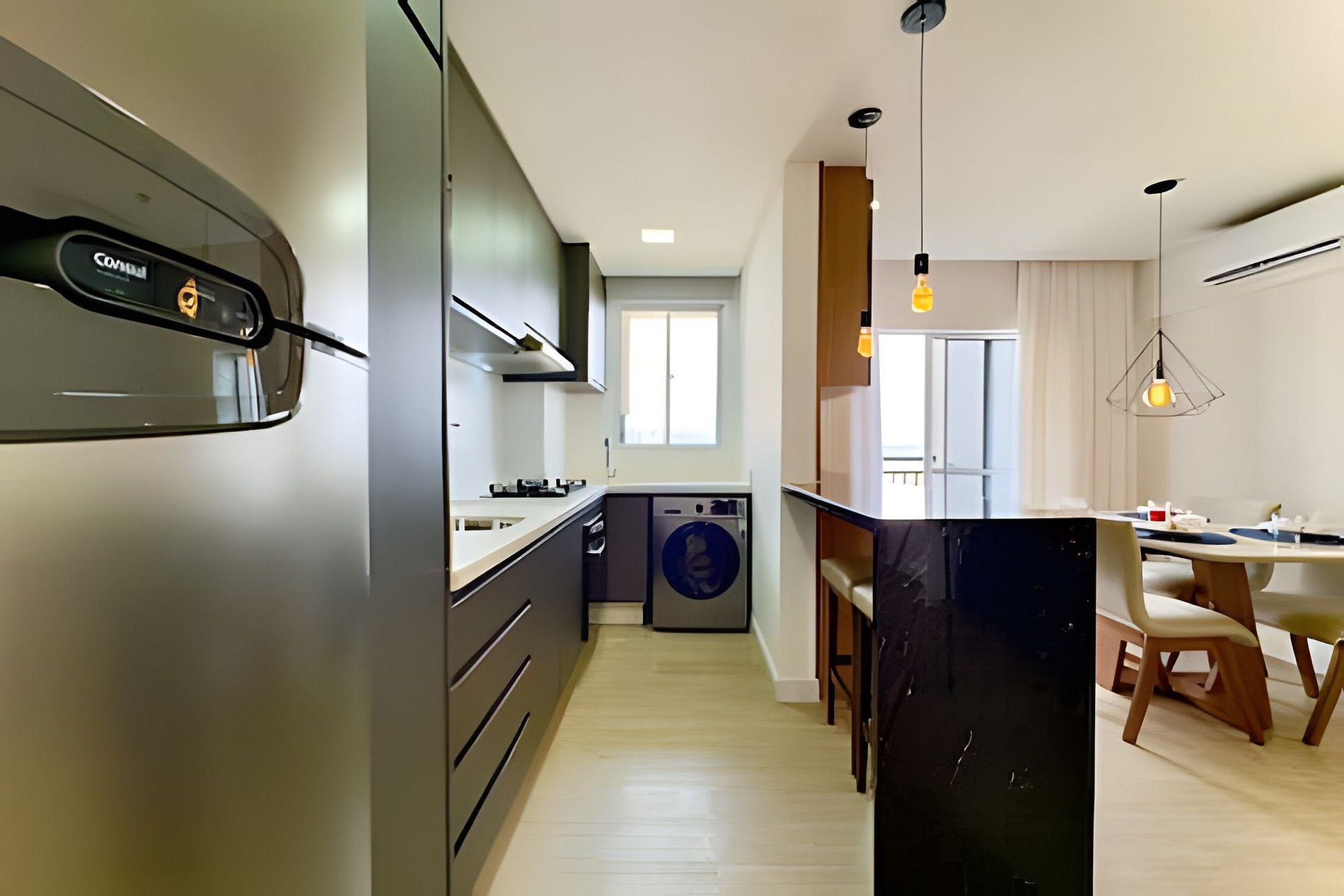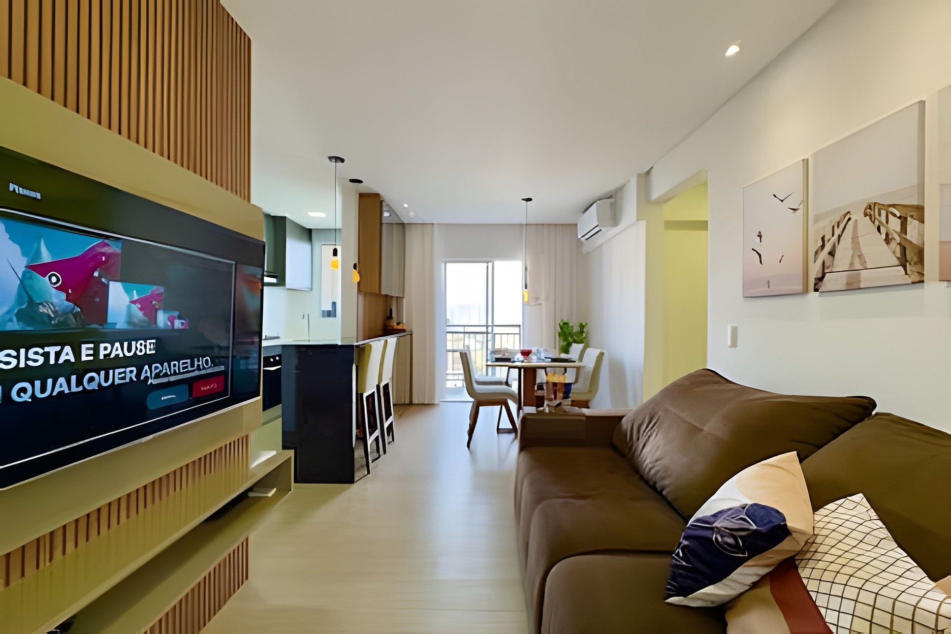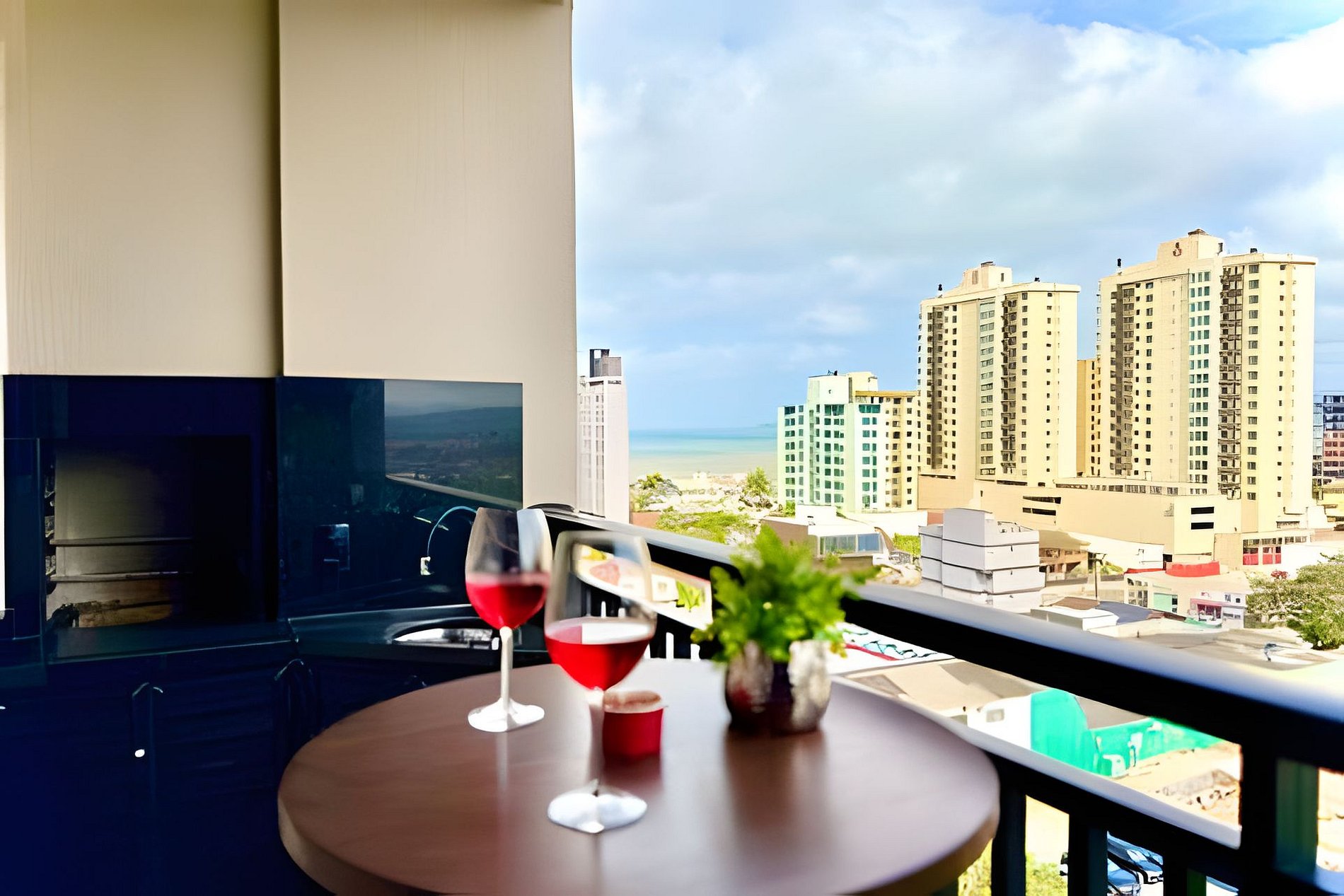 Destaques do apartamento - Acomoda até 5 pessoas com conforto - Vista lateral do mar a partir da sacada - Ambientes integrados e climatizados - Wi-Fi de alta velocidade - Cozinha completa com utensílios e eletrodomésticos modernos - Sacada com churrasqueira privativa - Smart TV e sala ampla com sofá aconchegante