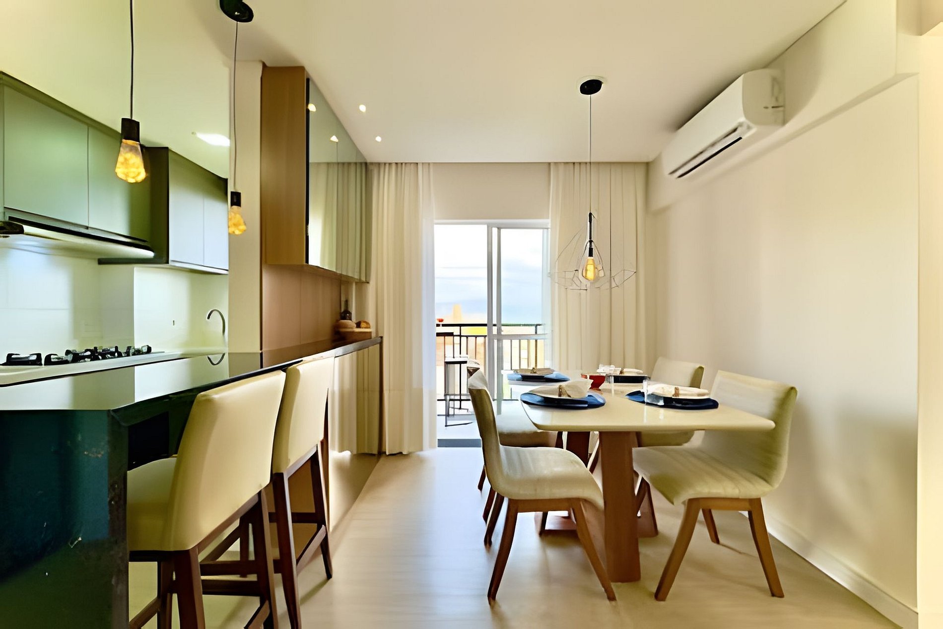 Destaques do apartamento - Acomoda até 5 pessoas com conforto - Vista lateral do mar a partir da sacada - Ambientes integrados e climatizados - Wi-Fi de alta velocidade - Cozinha completa com utensílios e eletrodomésticos modernos - Sacada com churrasqueira privativa - Smart TV e sala ampla com sofá aconchegante