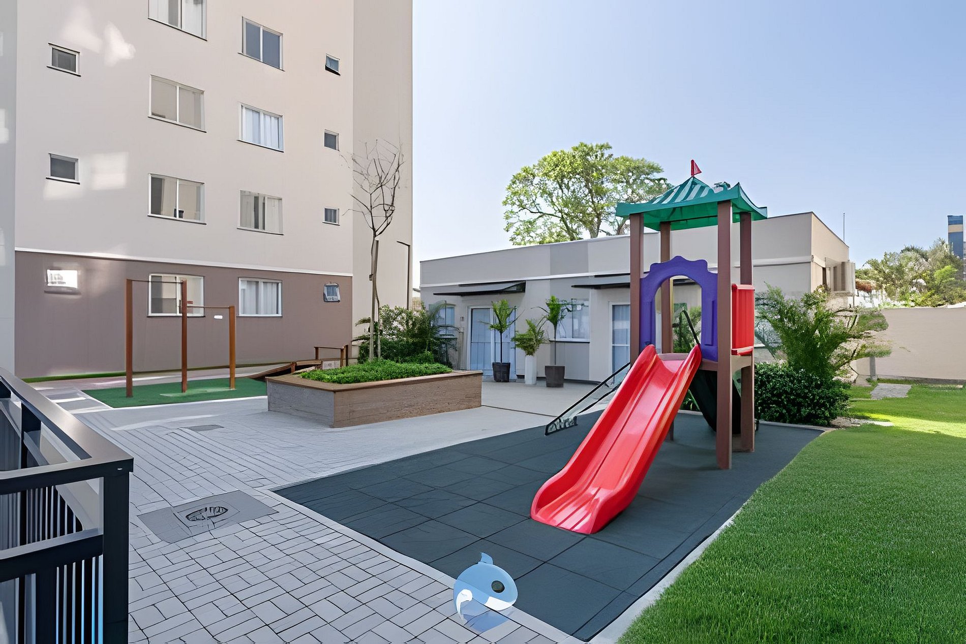 Dentro do condomínio, você encontrará diversas opções de lazer, como piscina adulto e infantil para refrescar-se e aproveitar momentos descontraídos. Além disso, temos um playground para as crianças e uma quadra de esportes ao ar livre, localizada no topo do prédio de garagem, para que todos possam se divertir e relaxar.