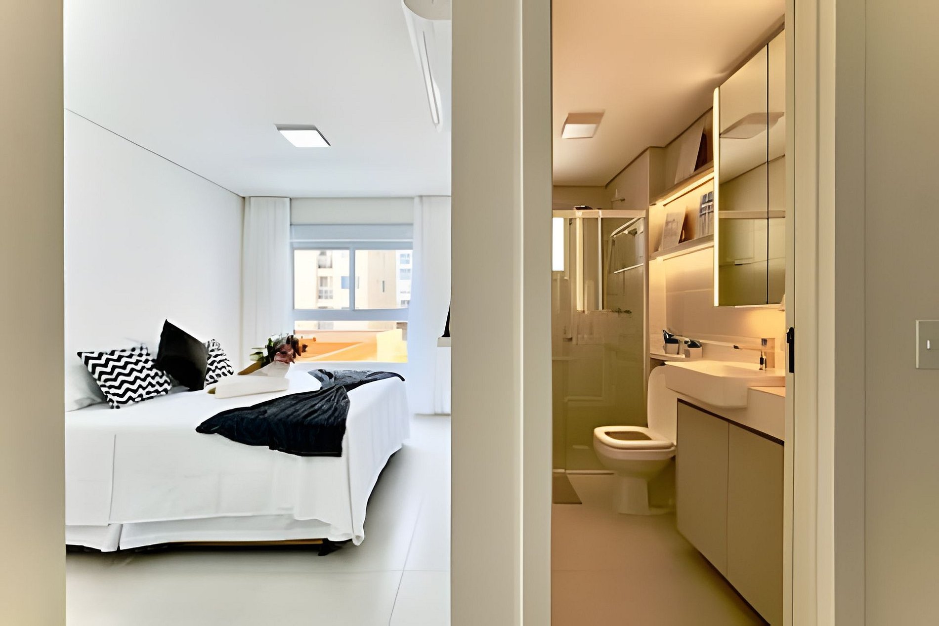 Ambientes climatizados, varanda com churrasqueira e lazer completo — com piscinas, jacuzzi, academia e acesso direto à praia.