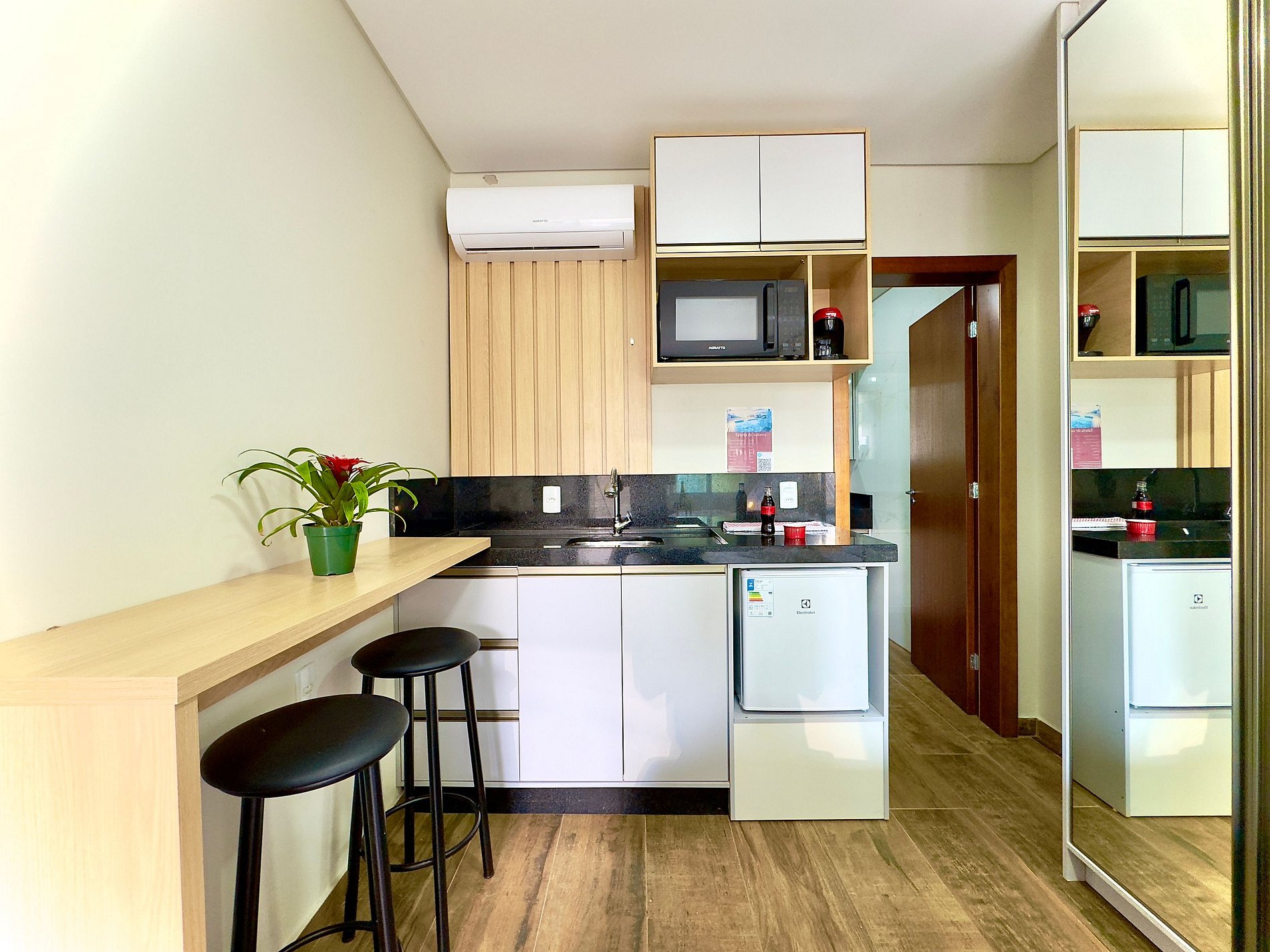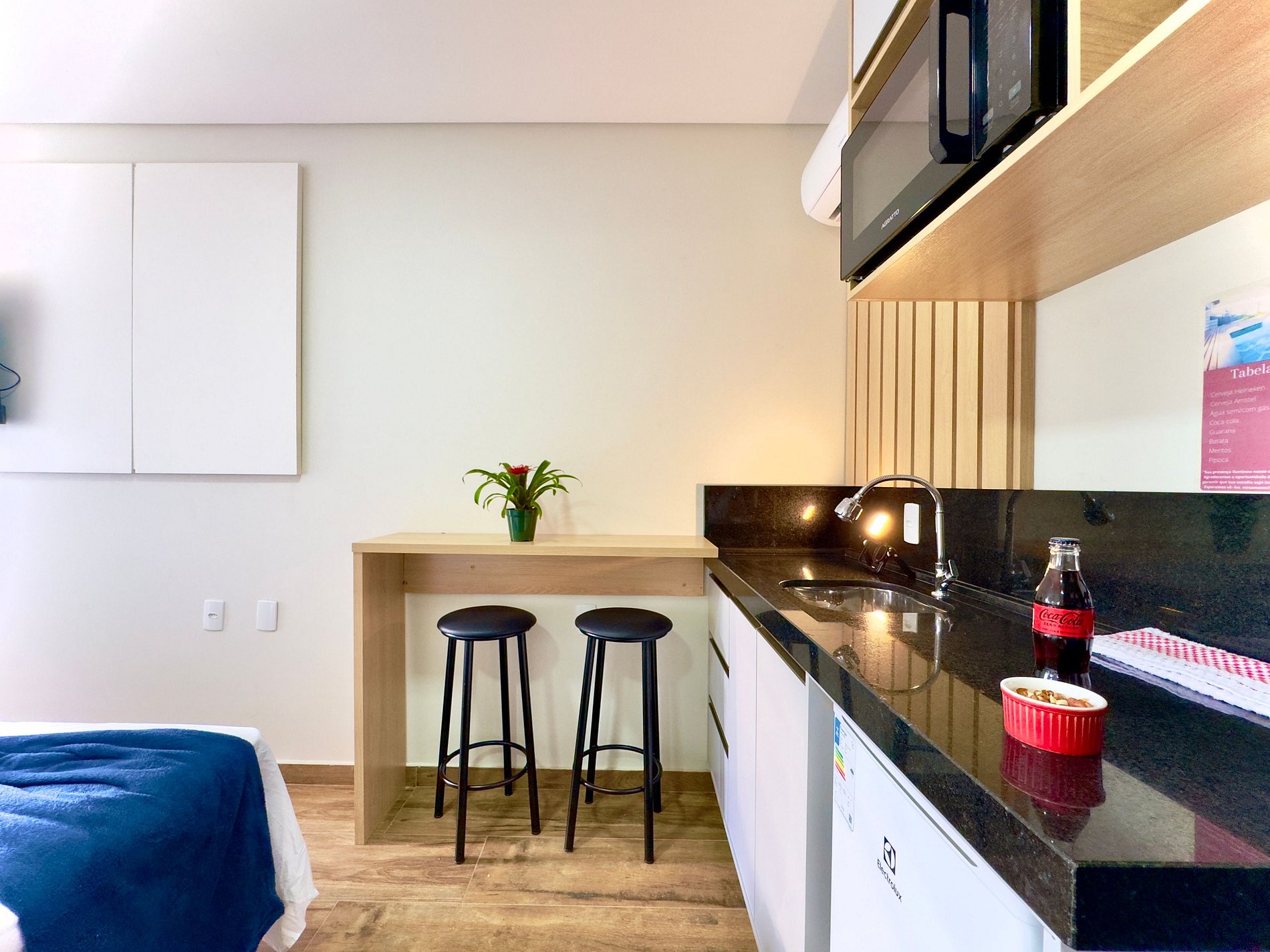 Compacto, confortável e super bem equipado – cama aconchegante, cozinha funcional, Wi-Fi rápido e ar-condicionado.