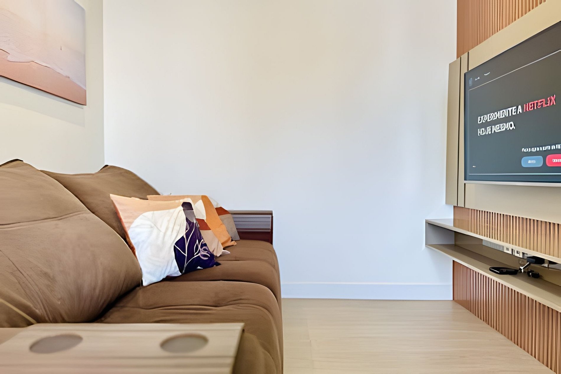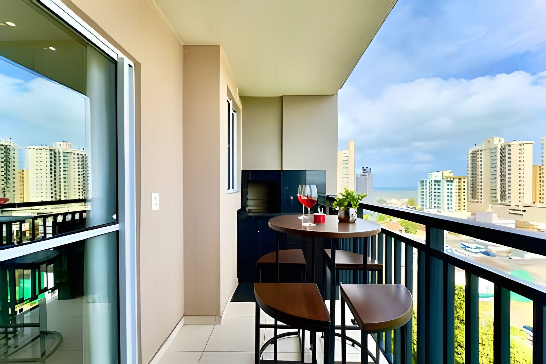 Destaques do apartamento - Acomoda até 5 pessoas com conforto - Vista lateral do mar a partir da sacada - Ambientes integrados e climatizados - Wi-Fi de alta velocidade - Cozinha completa com utensílios e eletrodomésticos modernos - Sacada com churrasqueira privativa - Smart TV e sala ampla com sofá aconchegante