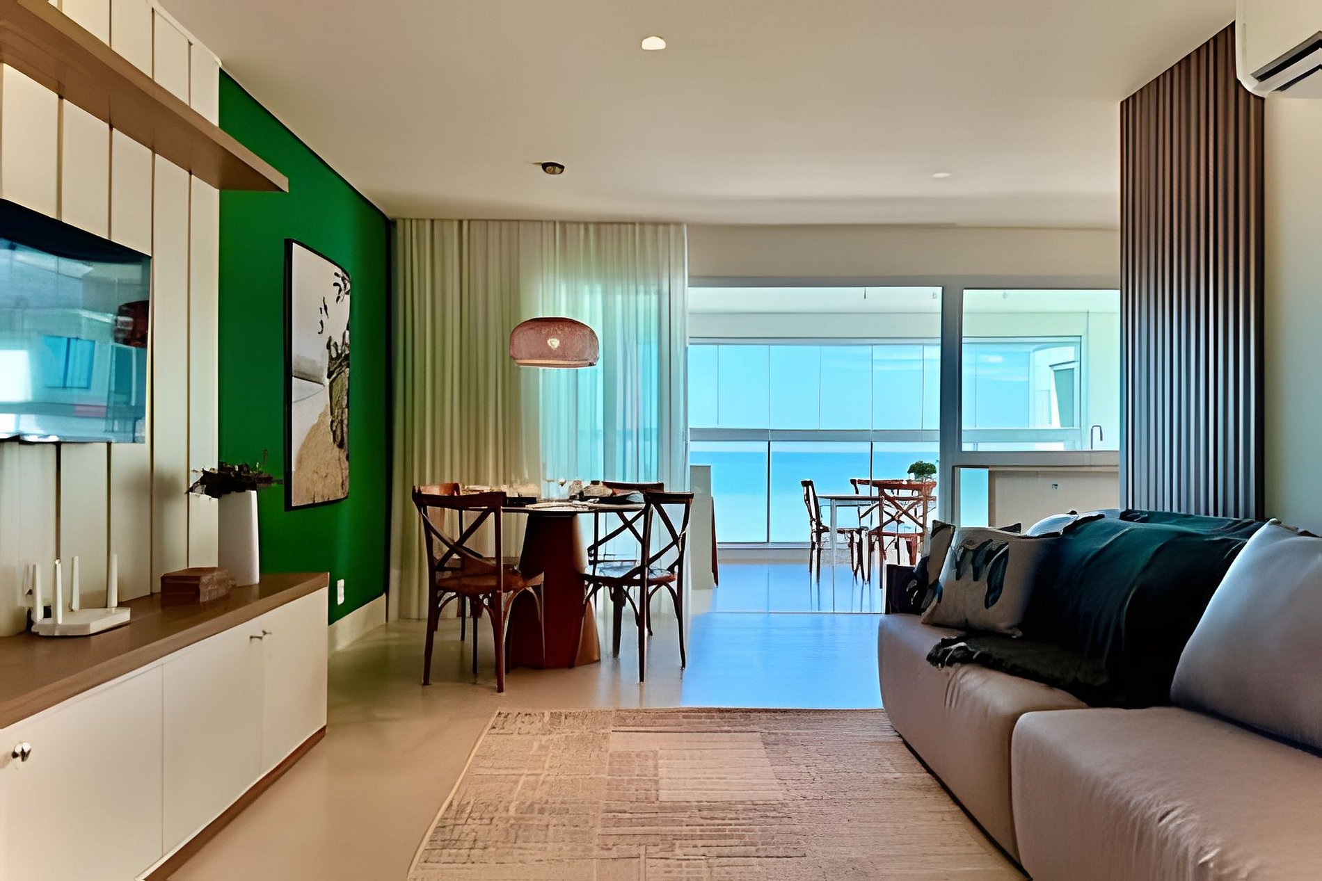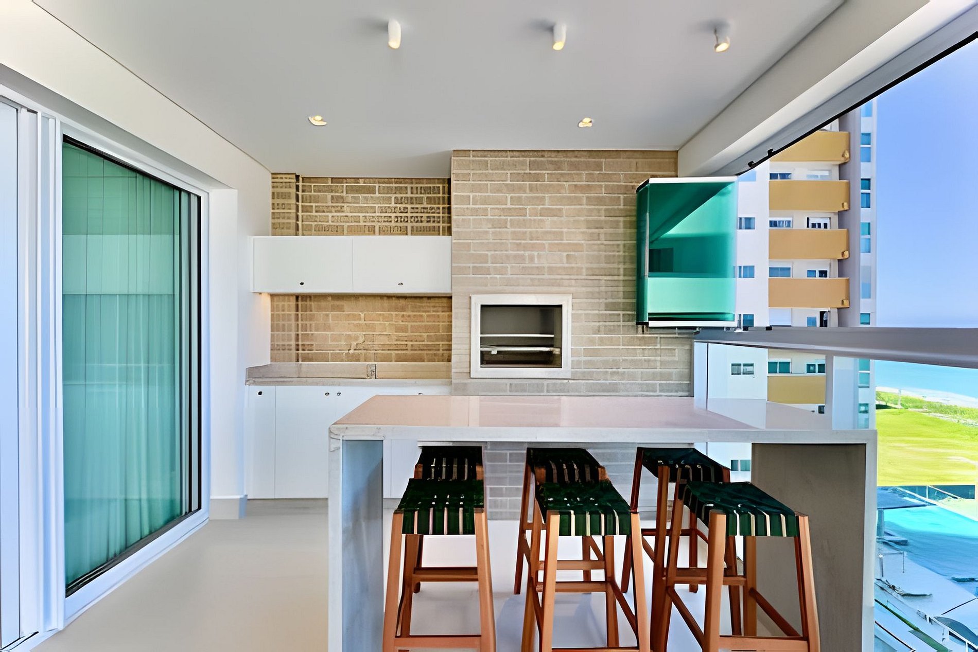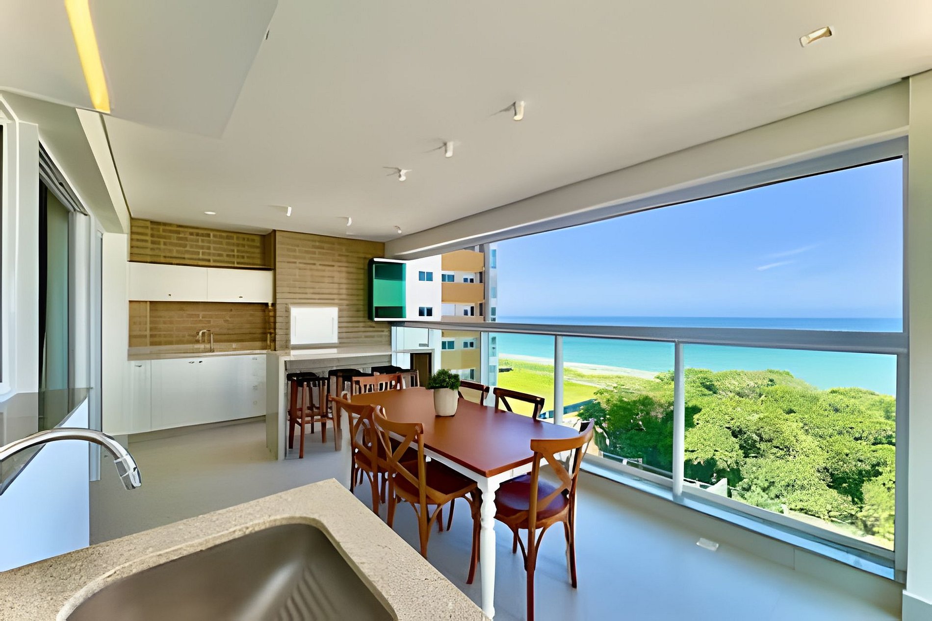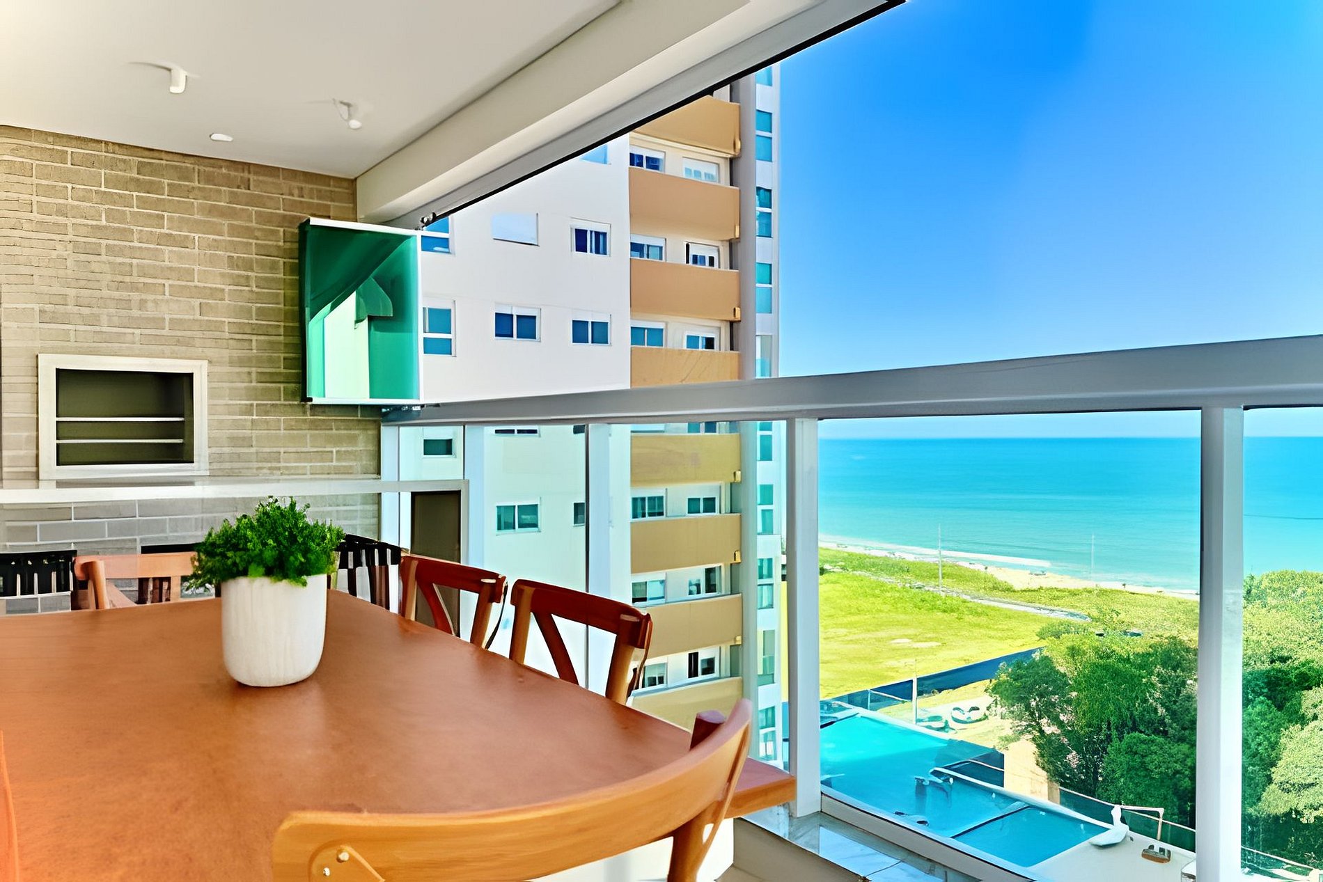 Ambientes climatizados, varanda com churrasqueira e lazer completo — com piscinas, jacuzzi, academia e acesso direto à praia.