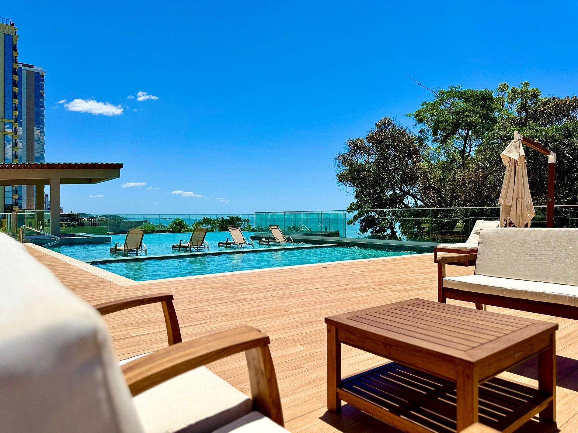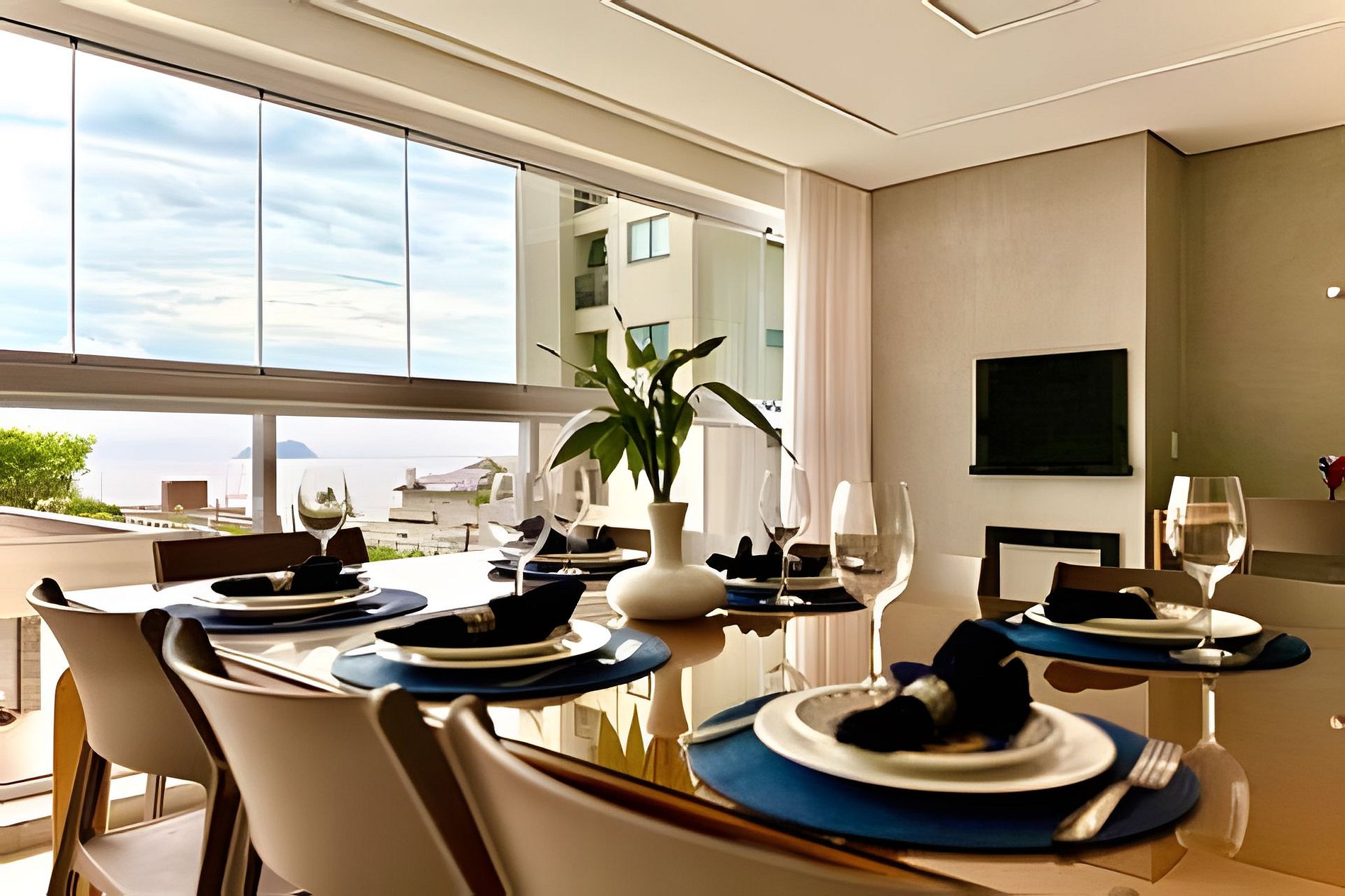 Ambientes climatizados, varanda com churrasqueira e lazer completo — com piscinas, jacuzzi, academia e acesso direto à praia.