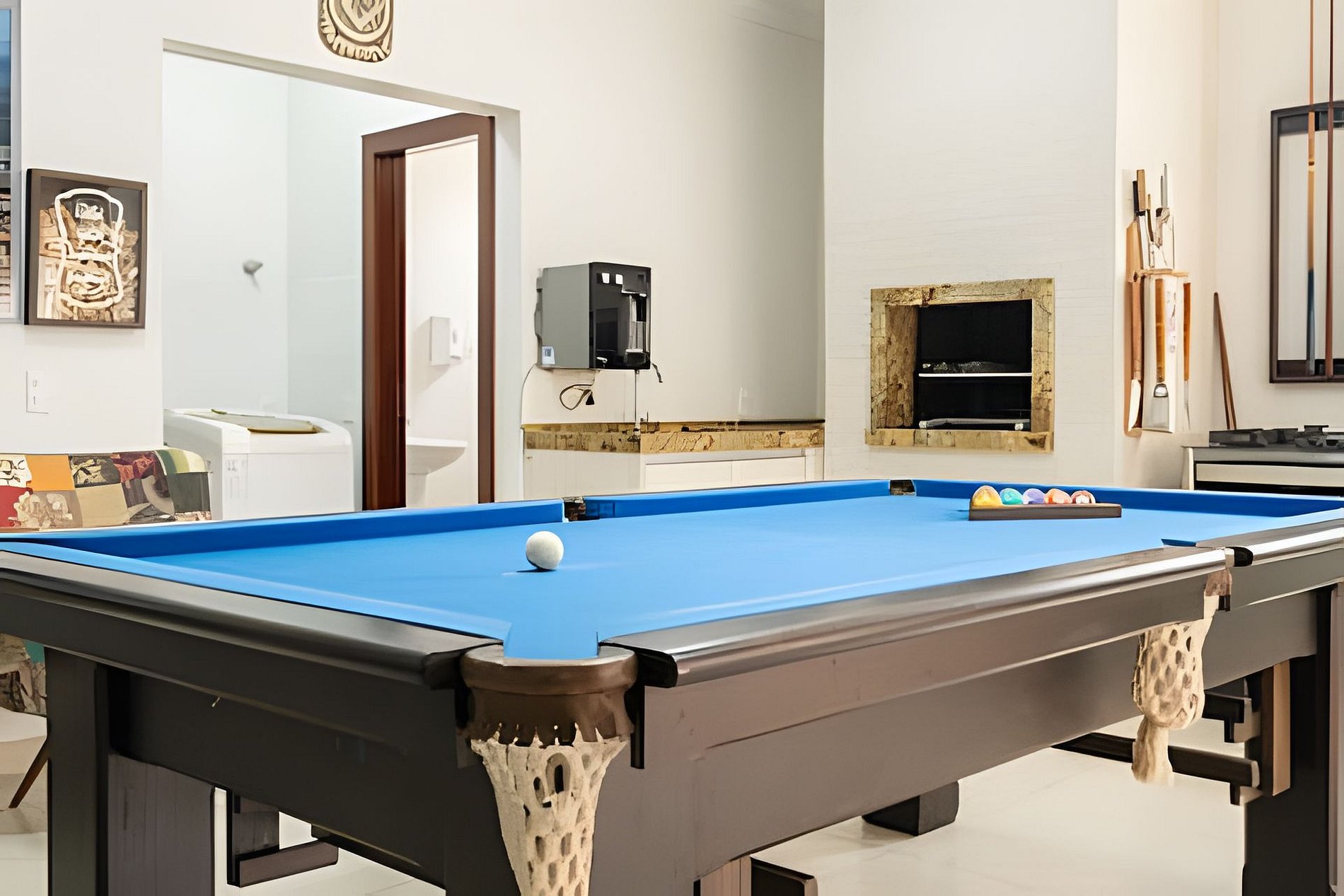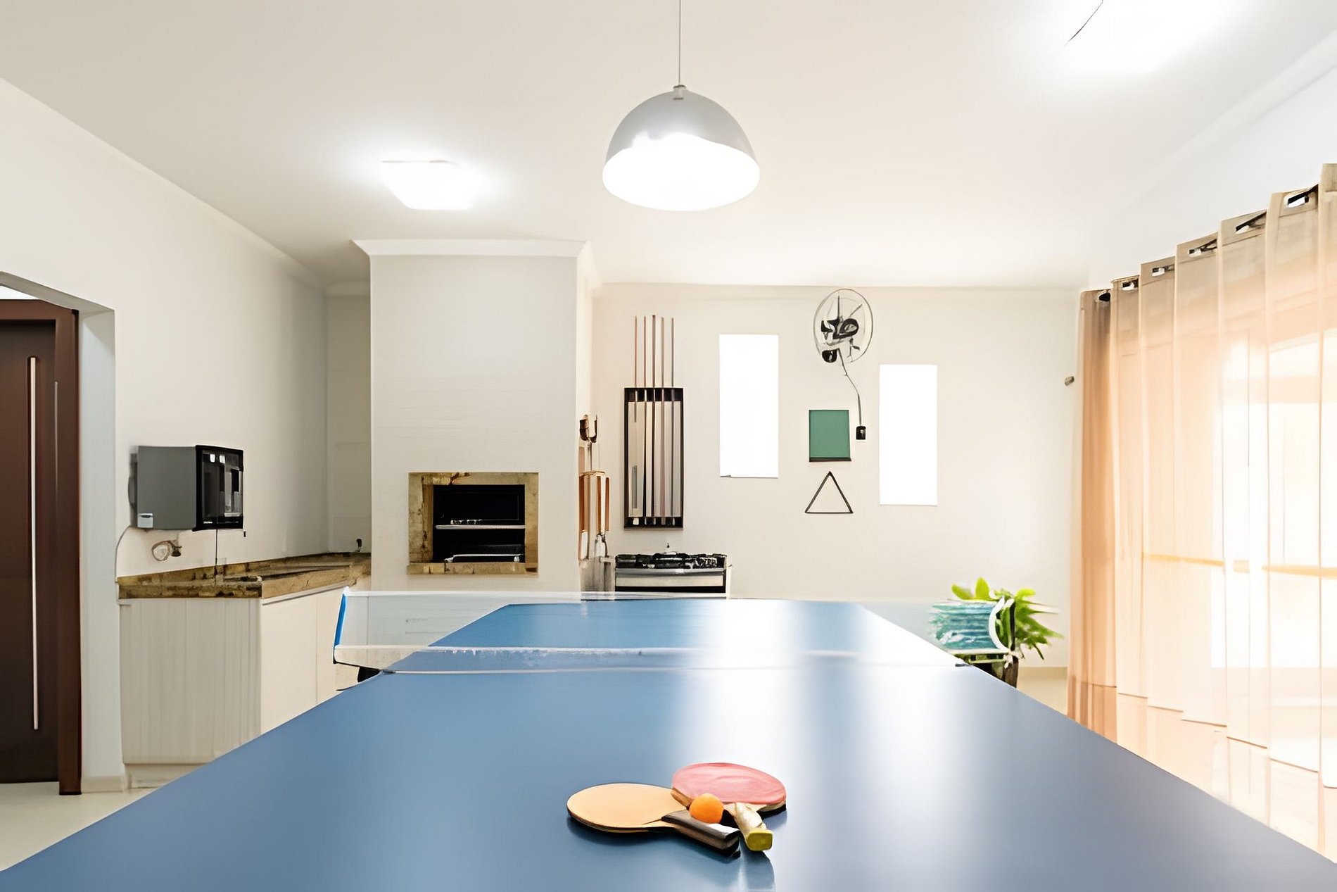 -Mesa de sinuca e pingue-pongue;