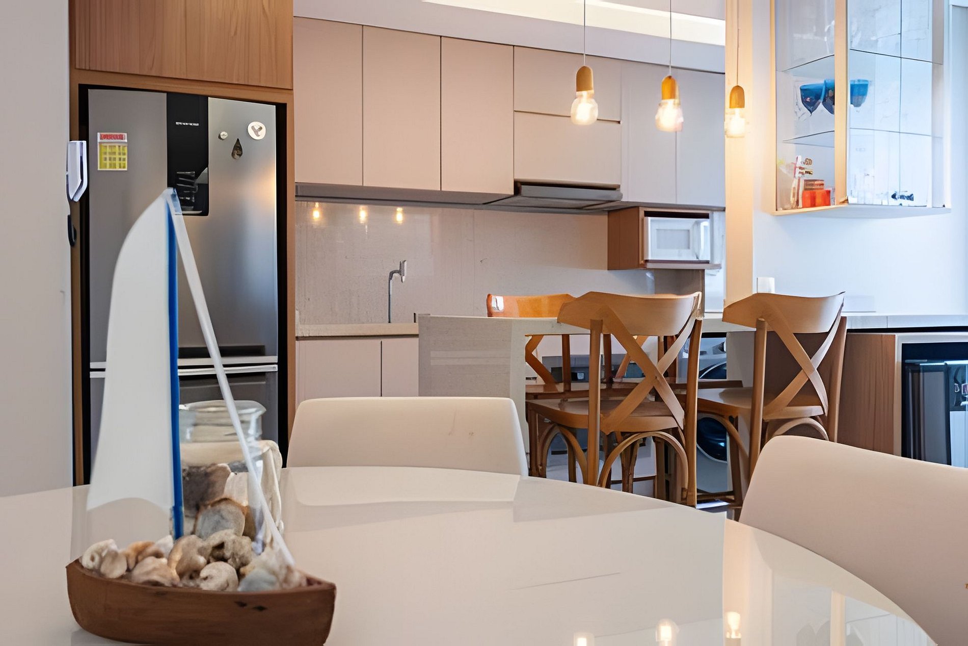 Destaques do apartamento: - Acomoda até 6 pessoas; - Ares-condicionados em todos os cômodos; -Quarto de solteiro com cama auxiliar; - Wi-fi; - Varanda com vista para o mar; - Varanda com churrasqueira privativa; - Cozinha completa; - Todas as tomadas são 220v Outros Destaques da acomodação: - Condomínio resort/ pé na areia - Spa; - Portaria/segurança 24 horas; - Playground infantil; - 1 vaga privativa de garagem; - Piscina; - Quadra de futebol; - Brinquedoteca; - Sala de jogos; - Espaço zen; - Pista de caminhada; - Espaço Pet; - Complexo com diversos comércios; - 25 minutos do Beto Carreiro World Disponibilizamos: -Roupas de cama, travesseiro e cobertas; -toalhas de banho ( uma por hóspede) *Suporte ao hóspede durante a estadia*