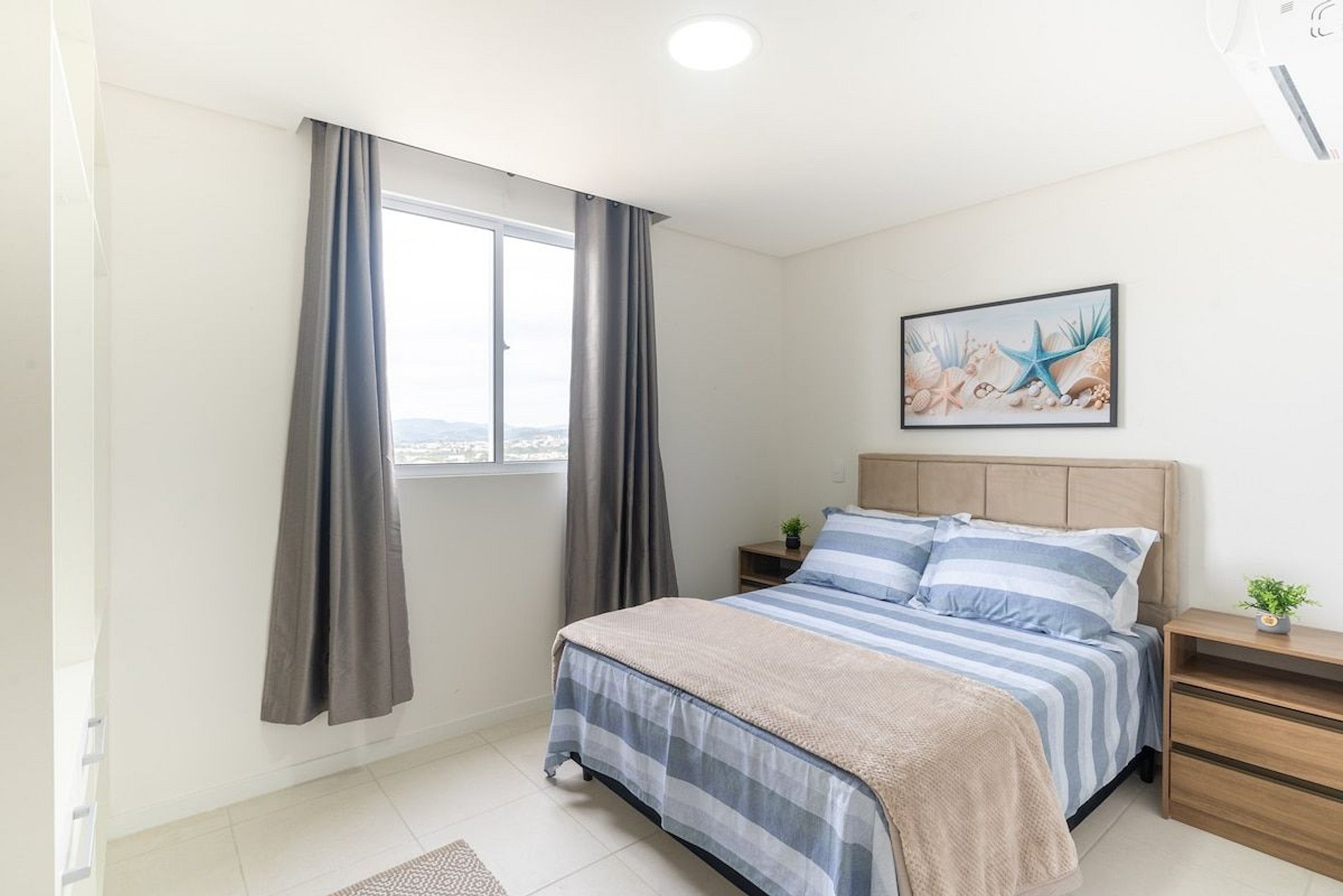 Destaques do apartamento: - Acomoda até 4 pessoas; - Sacada com churrasqueira; - Cozinha completa; - Ar condicionado; - Wi-fi; Outros destaques: - Piscina; - Portaria/segurança 24 horas; - Playground infantil; - 1 vaga privativa de garagem; - 150 metros da praia central; - 15 minutos do Beto Carreiro World Disponibilizamos: -Roupas de cama, travesseiro e cobertas; -Toalhas de banho (uma por hóspede) Para sua comodidade o apartamento possui papel higiênico, sabonete, detergente, café e açúcar em quantidade suficiente para os primeiros dias de sua estada.