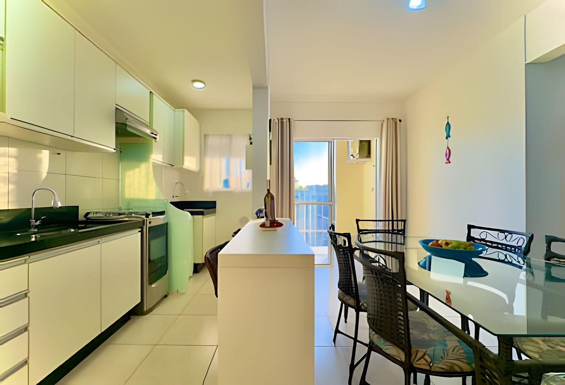 Cozinha completa, camas confortáveis, quarto climatizado e uma deliciosa sacada com churrasqueira para curtir sem pressa.
